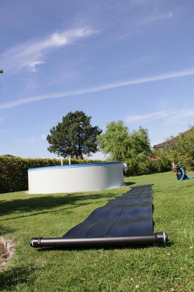 Förläng badsäsongen med denna klassiska solfångaranläggning. Solfångaren förhöjer poolens vattentemperatur med 4-6 grader. Detta förutsätter att man använder termocover under natten, så värmen inte försvinner ut i den blåa luften, samt att man kopplar till ett bypass-set (1572) så du därmed kan stänga av vattengenomströmningen i solfångaren under natten och på kyliga dagar.